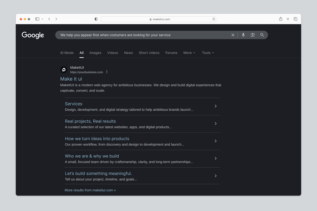 MakeItUI is a modern web agency for ambitious brands. We design and build digital experiences that captivate, convert, and scale.